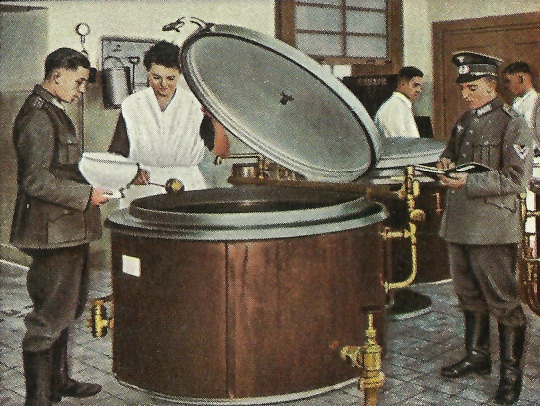 Za wyżywienie kompanii odpowiedzialna jest kuchnia i intendent (Verwaltungoffizier, Furier). Kuchnia przygotowuje obiad, spożywany przez kompanię wspólnie na stołówce. Żywienie poranne, popołudniowe i wieczorne odbywa się w izbie żołnierskiej. W tym celu odbiera się z kuchni kawę (herbatę, kakao itp.). Żywność na śniadanie i kolację (chleb, masło, dodatek w formie kiełbasy, sera, marmolady itp.) przydzielana jest każdemu żołnierzowi na wagę.